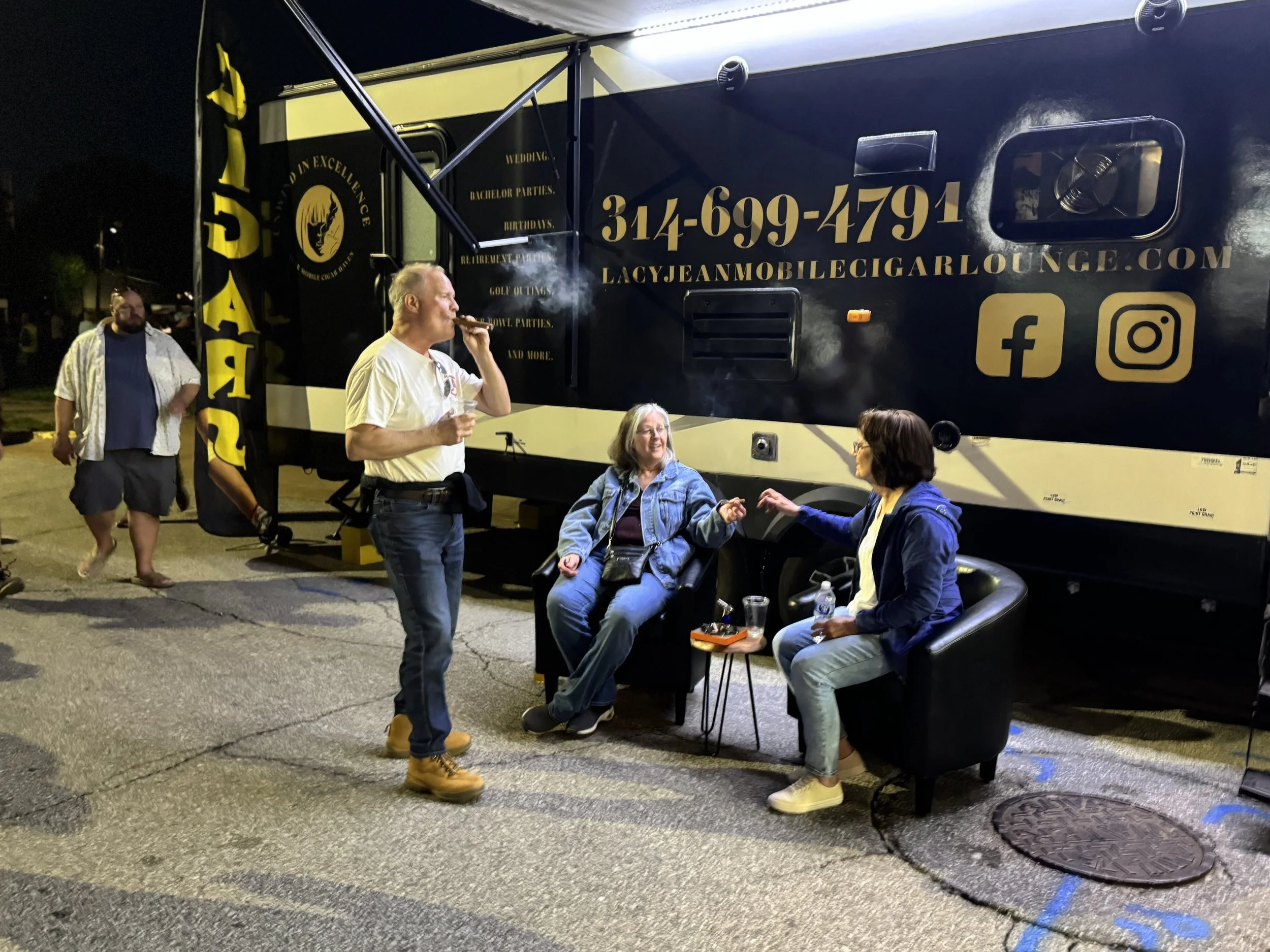 Experience luxury and sophistication with the LacyJean Mobile Cigar Lounge. Whether it’s a wedding, corporate event, private party, or celebration, our mobile lounge brings a premium cigar experience directly to you.